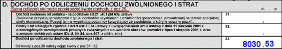 Skoro tak, to w polu 34 możemy wpisać nasze 1559,01 zł (bo kwoty z pola 33 nie przekroczymy), zaś pozostałe pola pozostawiamy puste tak jak na rysunku poniżej: