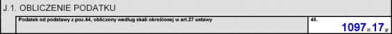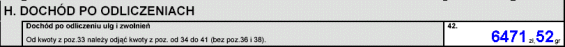 Jeśli nie dotyczą nas zwiększenia, bądź zmniejszenia podstawy opodatkowania, które podaje się w polu 43, to przechodzimy do pola 44.