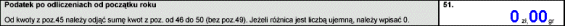 Od kwoty z pola 45 odejmujemy sumę kwot z pól 46, 47, 48 i 50, a wynik wpisujemy w pole 51. W naszym przykładzie do odjęcia mamy tylko 159 zł 14 gr, czyli: