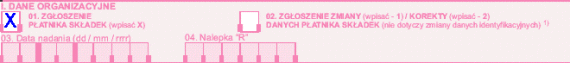 Zaznaczasz pole 1, ponieważ jest to zgłoszenie płatnika składek a nie zmiana danych.