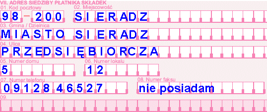 VII. ADRES SIEDZIBY PŁATNIKA SKŁADEK