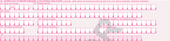 IX. ADRES DO KORESPONDENCJI PŁATNIKA SKŁADEK