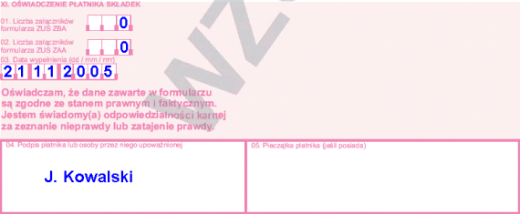 XI. OŚWIADCZENIE PŁATNIKA SKŁADEK