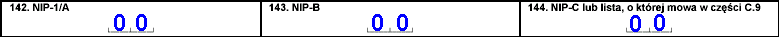 Pole 143 - podajemy zero, bo nie dołączamy załącznika NIP-B, w którym podaje się dodatkowe konta bankowe, jeśli nie starczyło nam na nie miejsca w części C.5. formularza.